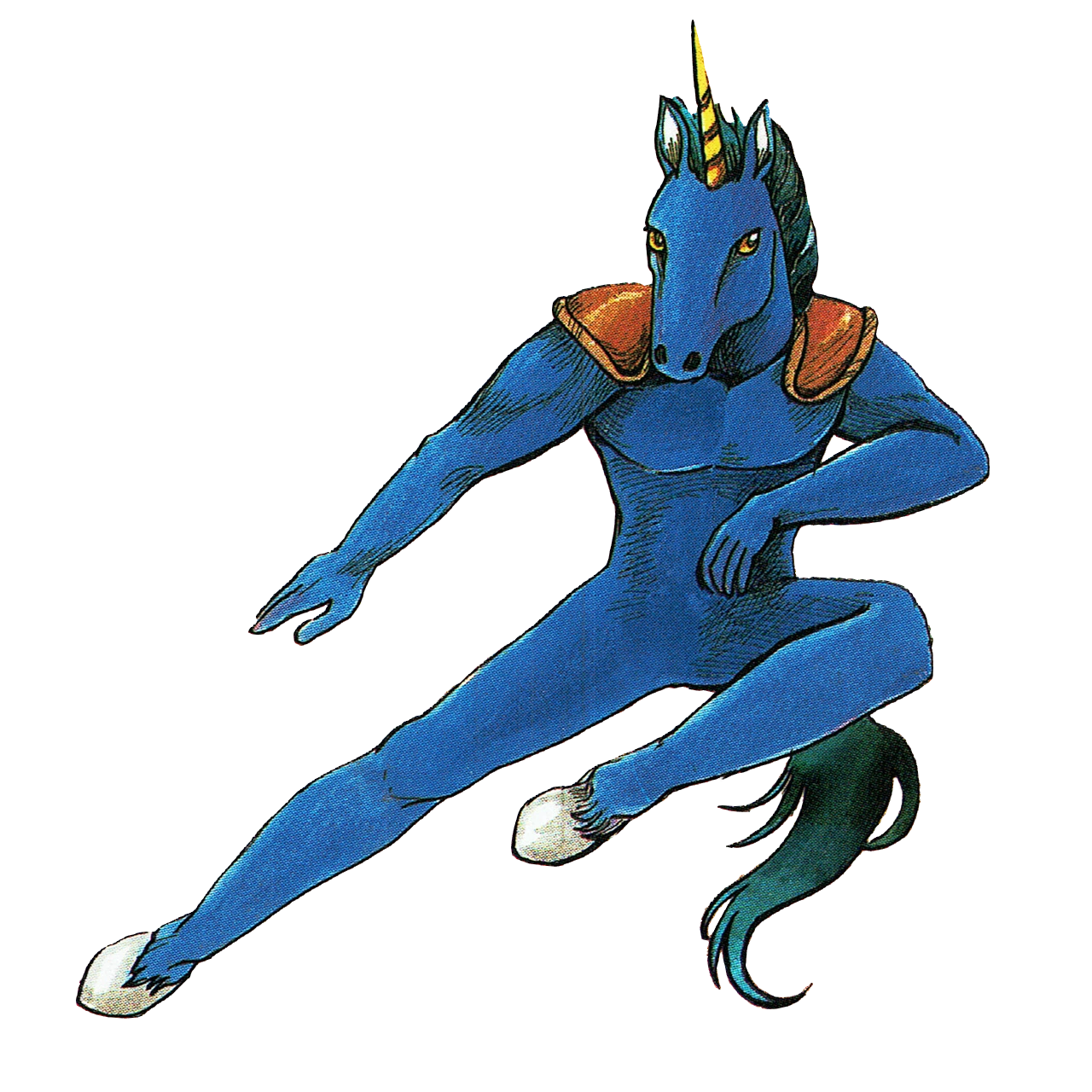 It is a purple humanoid unicorn. It attacks the Centurion with jumping kicks, easily giving trouble unless attacked at close range to make it fall back before it has a chance to kick.