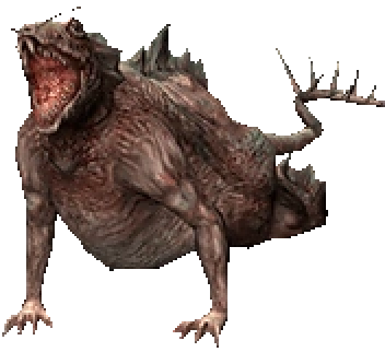 It is a massive rat with webbed fins on the sides of its head, its back, and its legs, which now lack feet since its mutation. The tip of its long tail is filled with spikes.